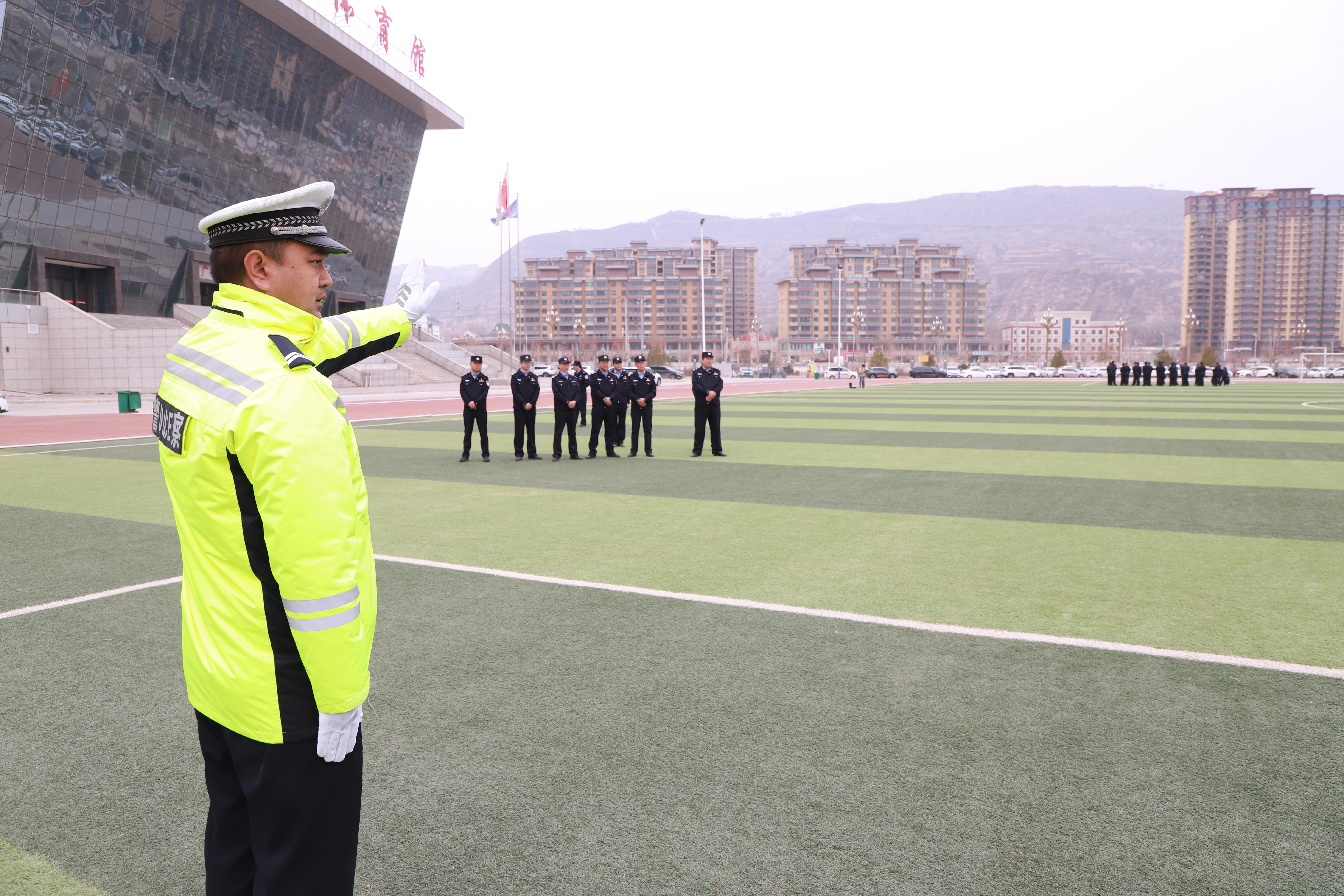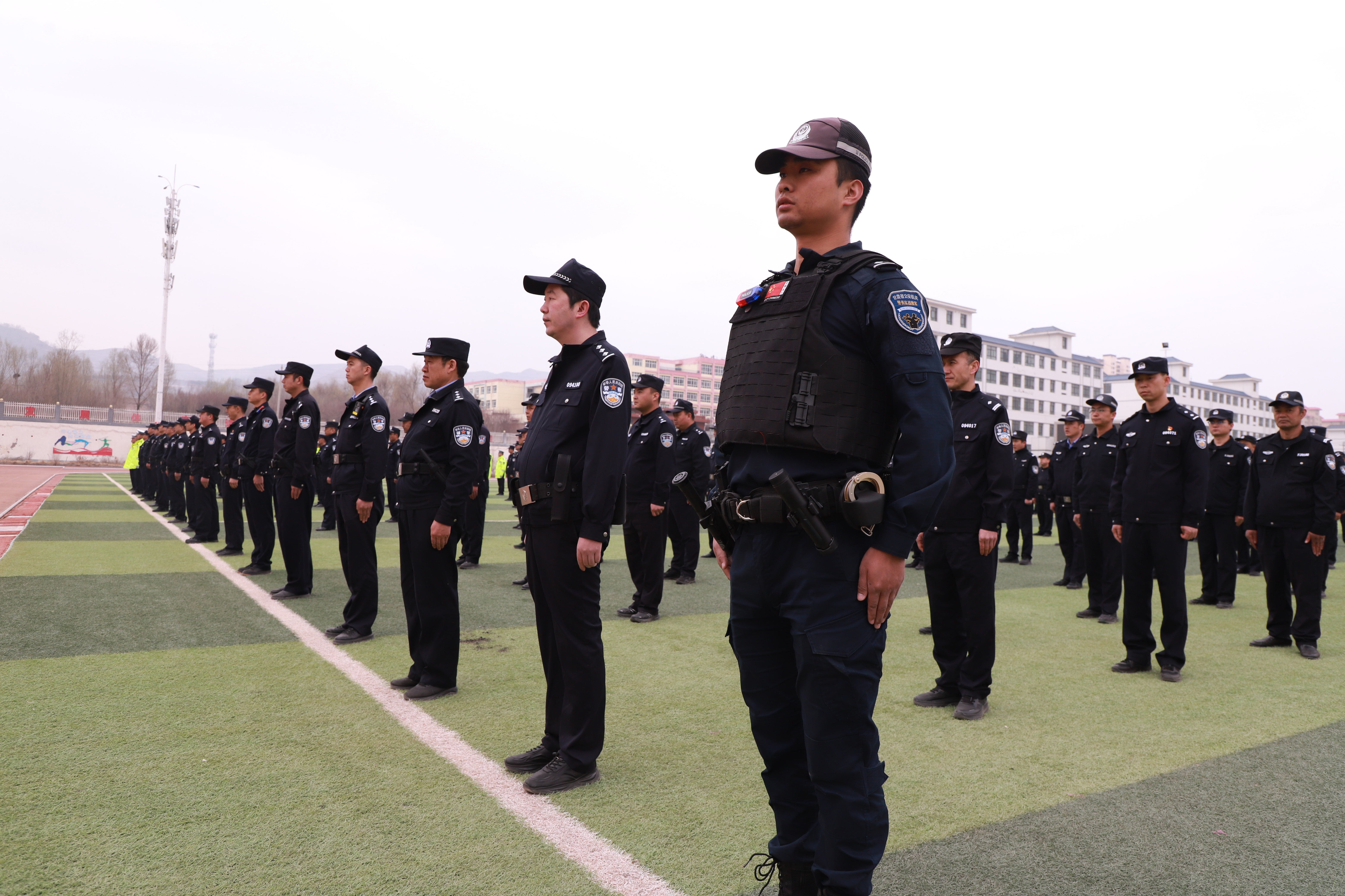 仪式结束后,潘学江与局党委班子成员一同观摩了由局机关、派出所、交管大队等民辅警组成的练兵方队。全体参训人员警容严整、精神抖擞,严格按照教官指令完成队列礼仪、交通指挥手势操、单警装备使用等训练科目,充分展现出广河公安队伍昂扬的斗志和过硬的作风。