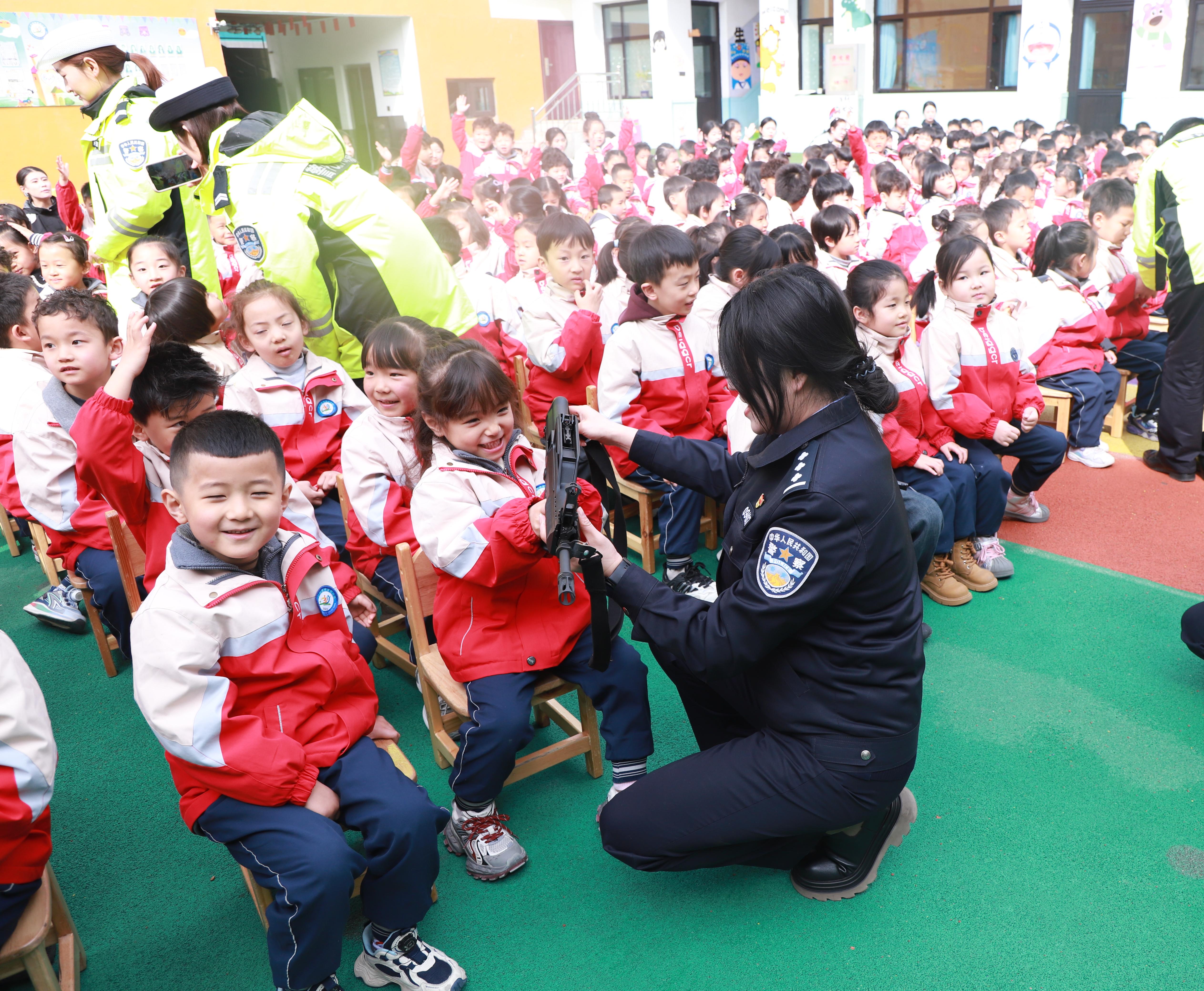 活动中,民警化身“安全老师”,用孩子们易于理解的语言和方式,生动介绍了警察的日常工作与职责,在幼小的心灵中播下守护安全的种子。交警大队民警则聚焦出行安全,通过趣味问答、情景模拟,重点讲解了“过马路走斑马线、遵守信号灯、乘车系好安全带、佩戴安全头盔”等核心交通规则,并鼓励孩子们成为家庭中的“小小安全监督员”。