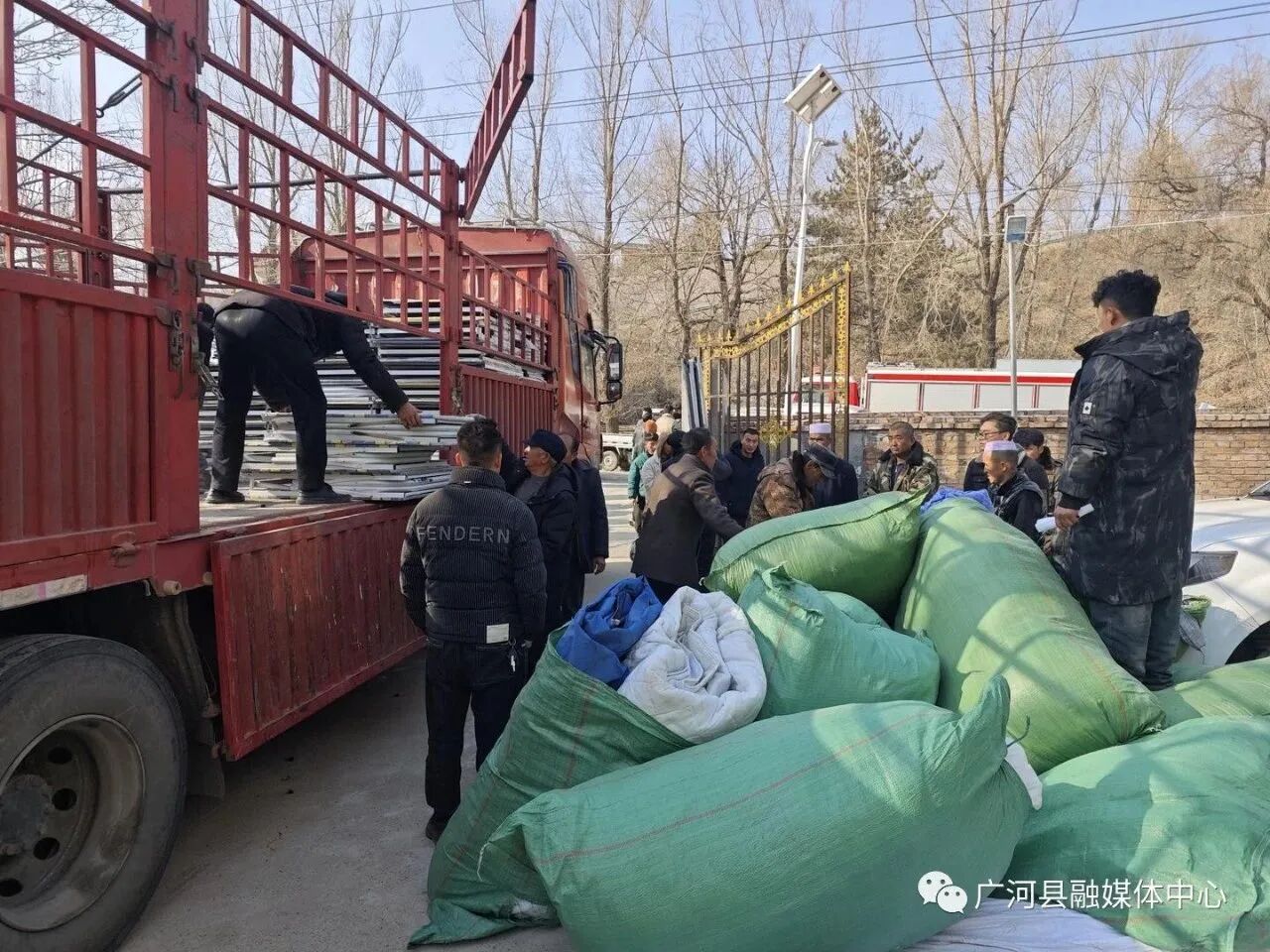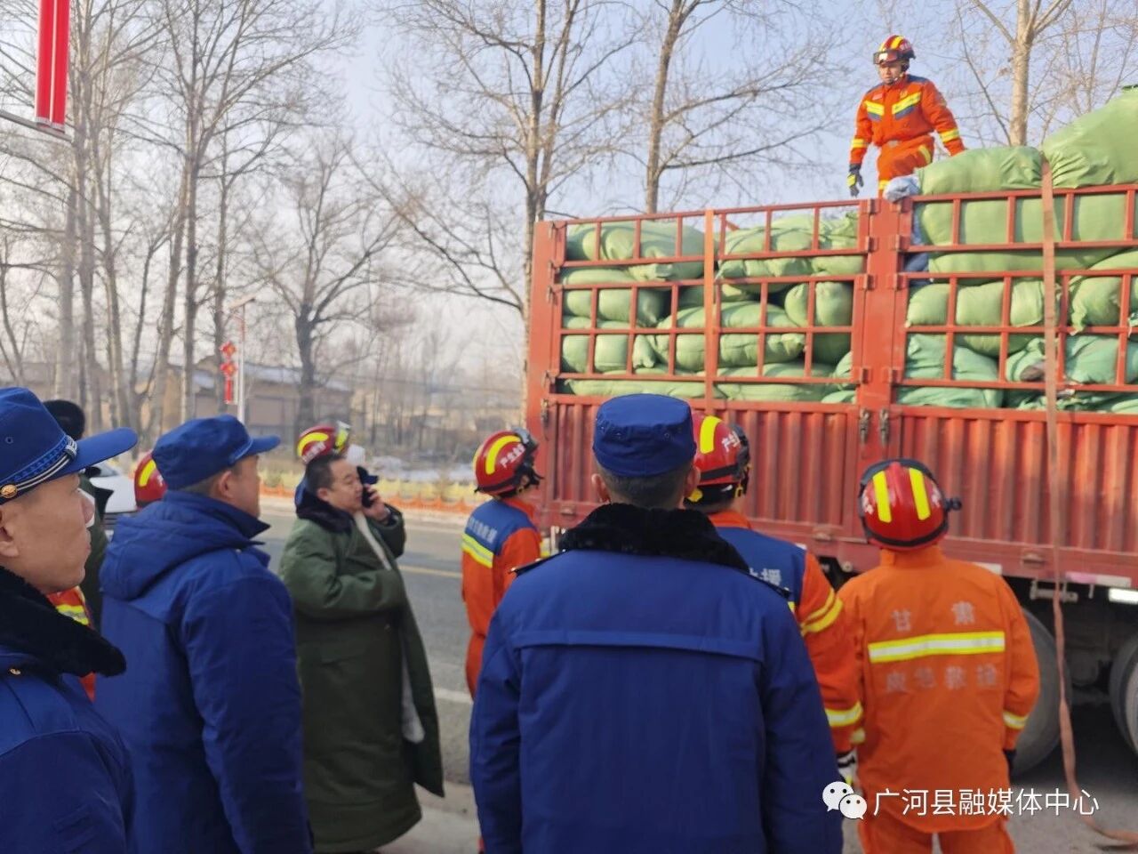 隔山隔水不隔情。12月18日23时59分,我州积石山县发生6.2级地震。灾情发生后,广河县委、县政府迅速响应省州安排、立即开展行动,于次日凌晨3点安排筹备救援物资,凌晨5点,由副县长郭斌带队,将首批总价值313500元的50顶帐篷、200张床、200条棉被、200棉褥条、200个枕头、200件皮大衣等救援物资,迅速送达积石山县受灾严重的刘集乡陶家和团结两个村,并在当地相关部门的统一安排下,将救援物资全部发放到受灾群众手中。