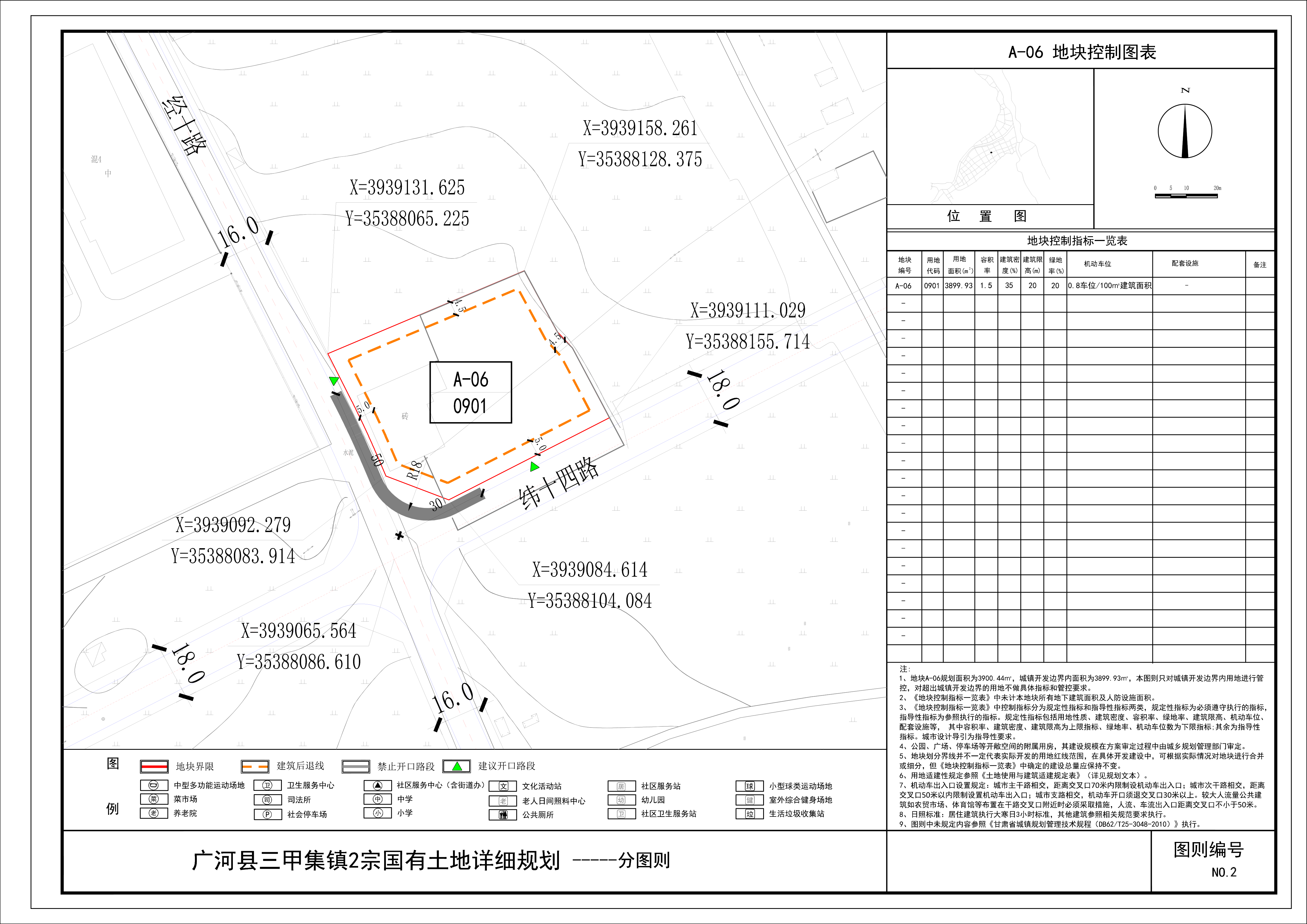 规划范围为《广河县三甲集镇国土空间总体规划(2021-2035年)》中的2个地块,包括A-05地块(纬六路与北山路交叉口西北侧)、A-06地块(纬十四路以北,经十路以东),总面积约2.0136公顷。